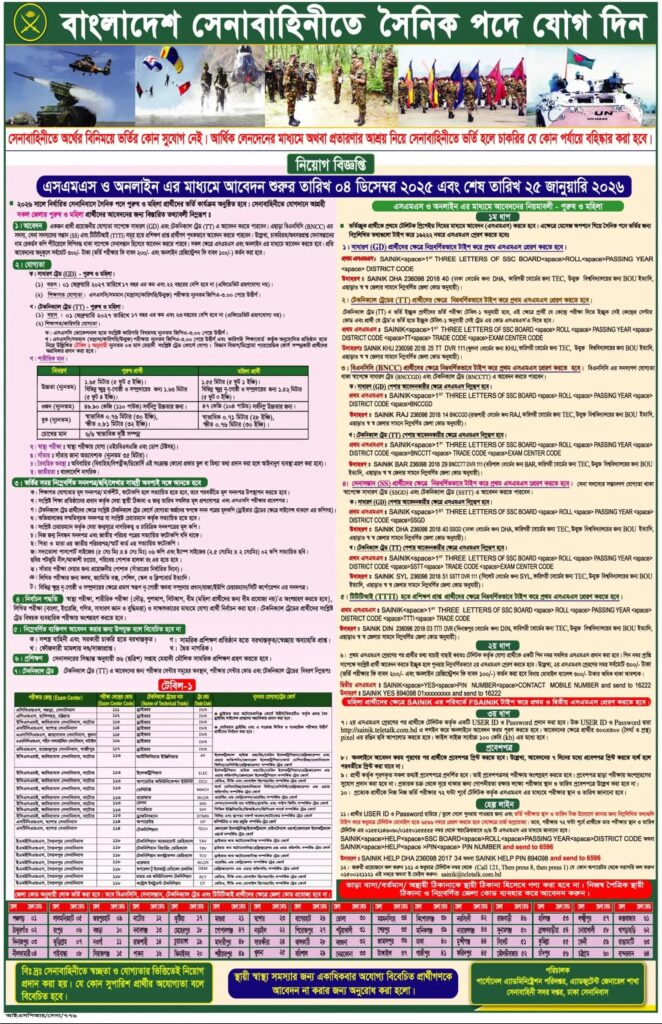 সেনাবাহিনী সৈনিক নিয়োগ বিজ্ঞপ্তি ২০২৫ অফিসিয়াল ইমেজ/PDF